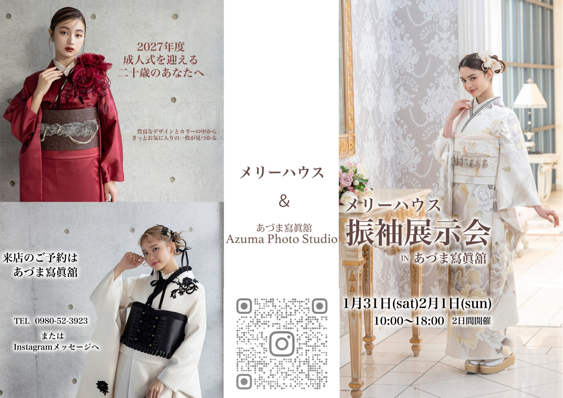 この度あづま寫眞舘にてメリーハウスと共に振袖展示会を開催します。